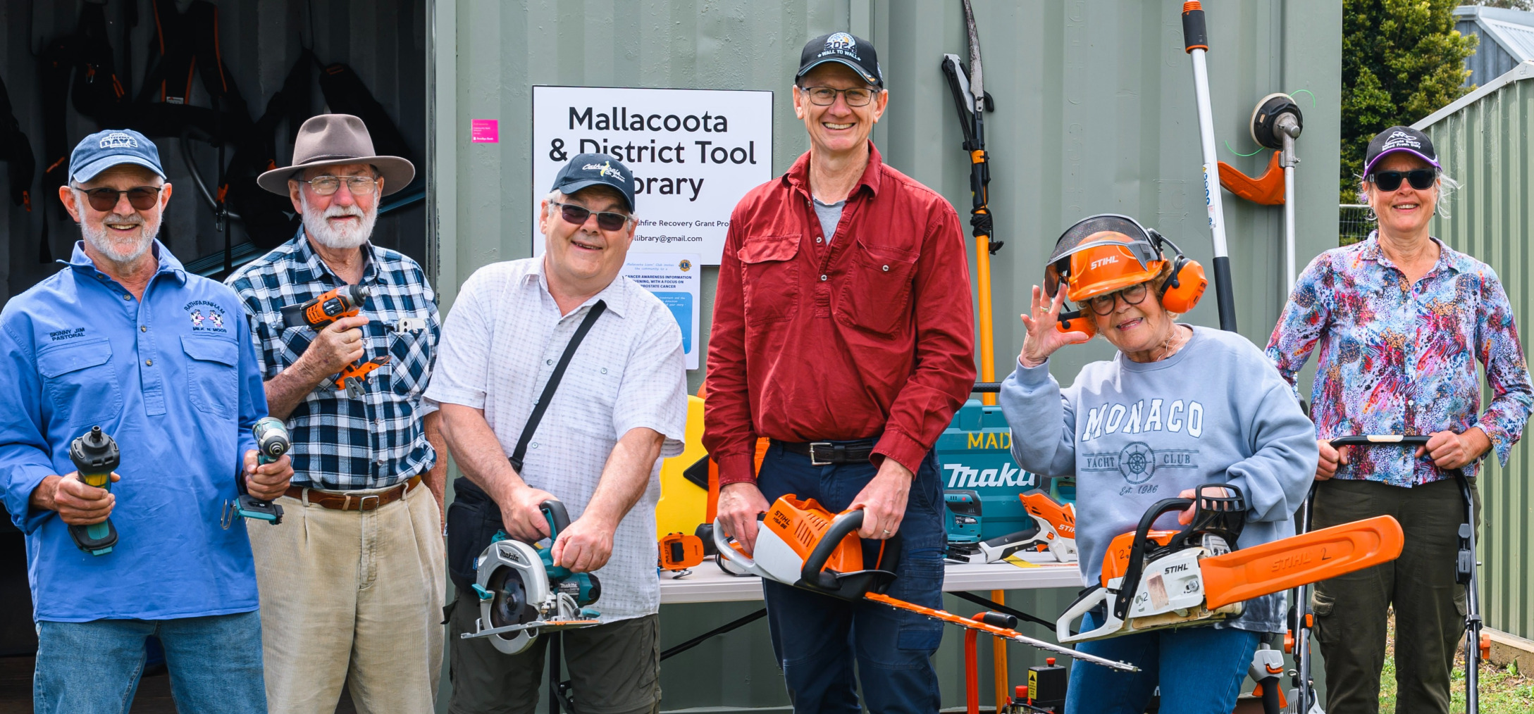 The Mallacoota and District Tool Library Incorporated Association was established in 2021 to deliver an operational and sustainable community resource to support the Mallacoota and District in recovering from the 2019-20 Black Saturday Bushfires. The Tool Library also aims to facilitate community activity in responding to the local impacts of climate change and bushfire risk.
